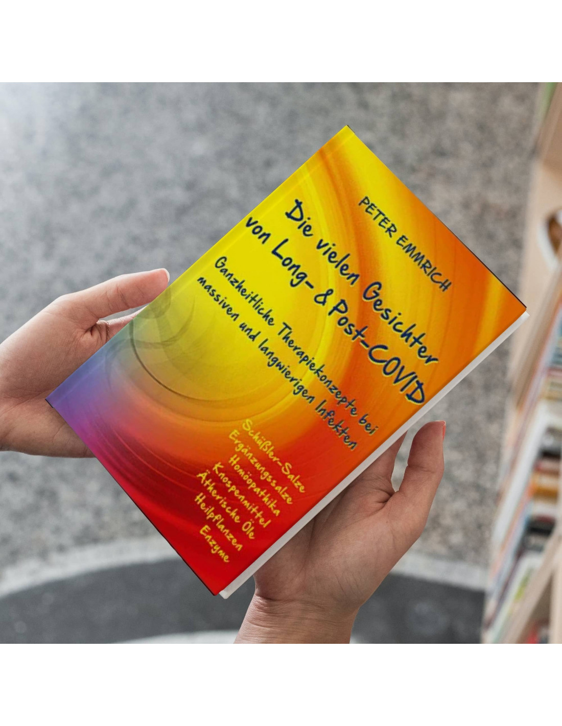 Diesem Buch von Peter Emmrich "Die vielen Gesichter von Long- & Post-COVID - Ganzheitliche Therapiekonzepte massiven und langwierigen Infekten" wirft einen Blick hinter die Kulissen dieser vielfältigen Infektionen, versucht die Ursachen zu enthüllen und Wege zur Heilung aufzuzeigen. Häufig liegt der Fokus darauf, chronische Entzündungen zu identifizieren und gezielt zu behandeln. Dabei können verschiedene Heilmittel wie Heilpflanzen, Knospenmittel, ätherische Öle, Schüßler-Salze, Homöopathika und Enzyme gezielt eingesetzt werden.