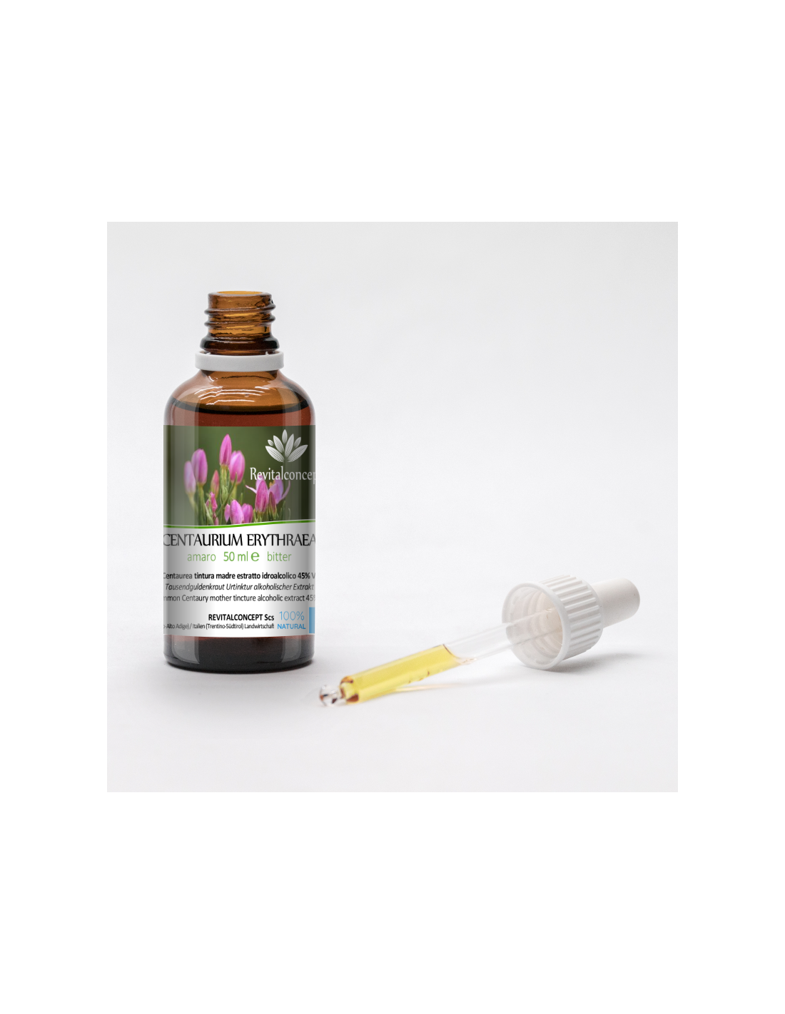 Ingredients: Water, ethyl alcohol*, Erythraea centaurium L.* flowery aerial part (*from organic farming)