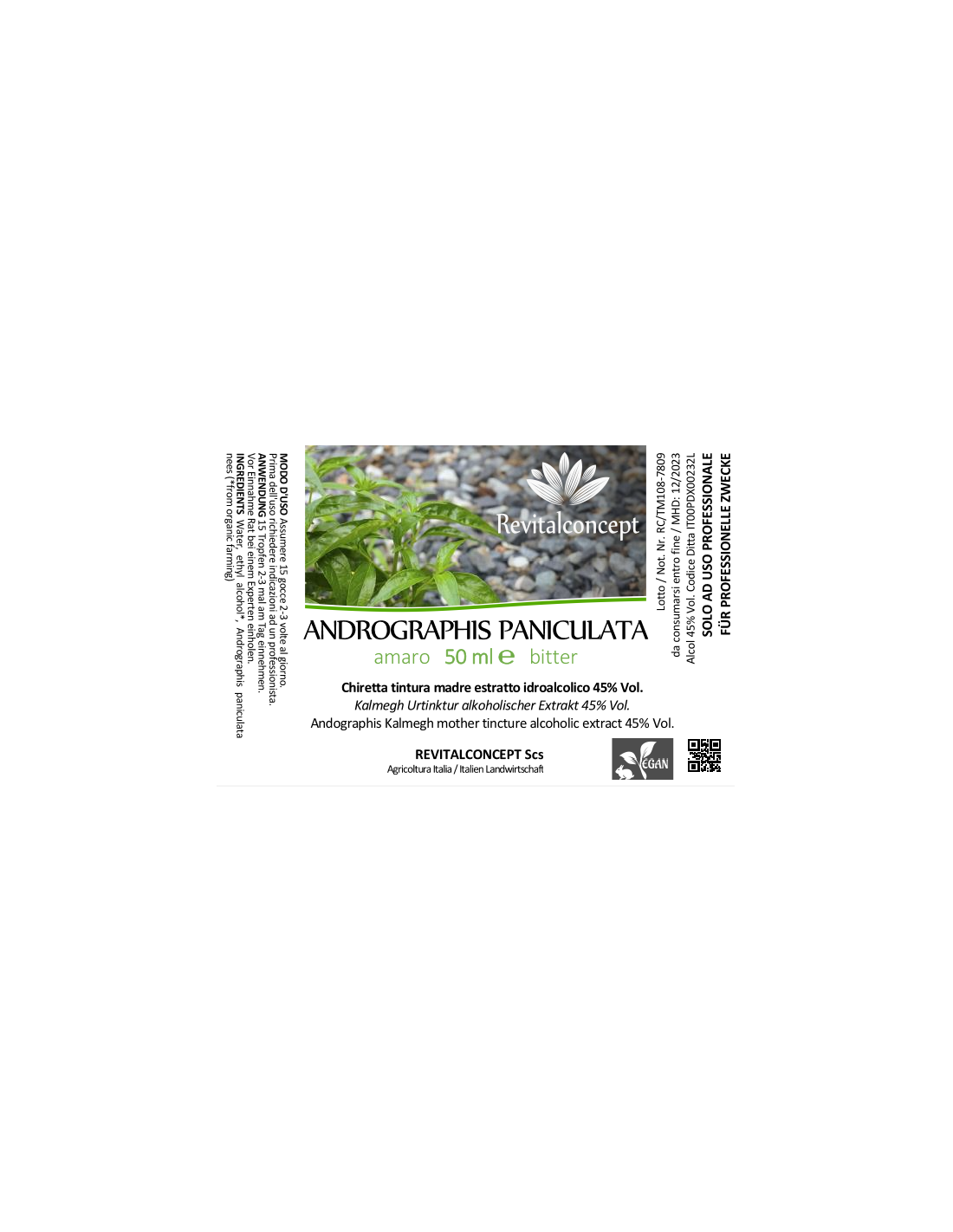 Ingredients: Water, ethyl alcohol*, Andrographis paniculata nees (*from organic farming)
