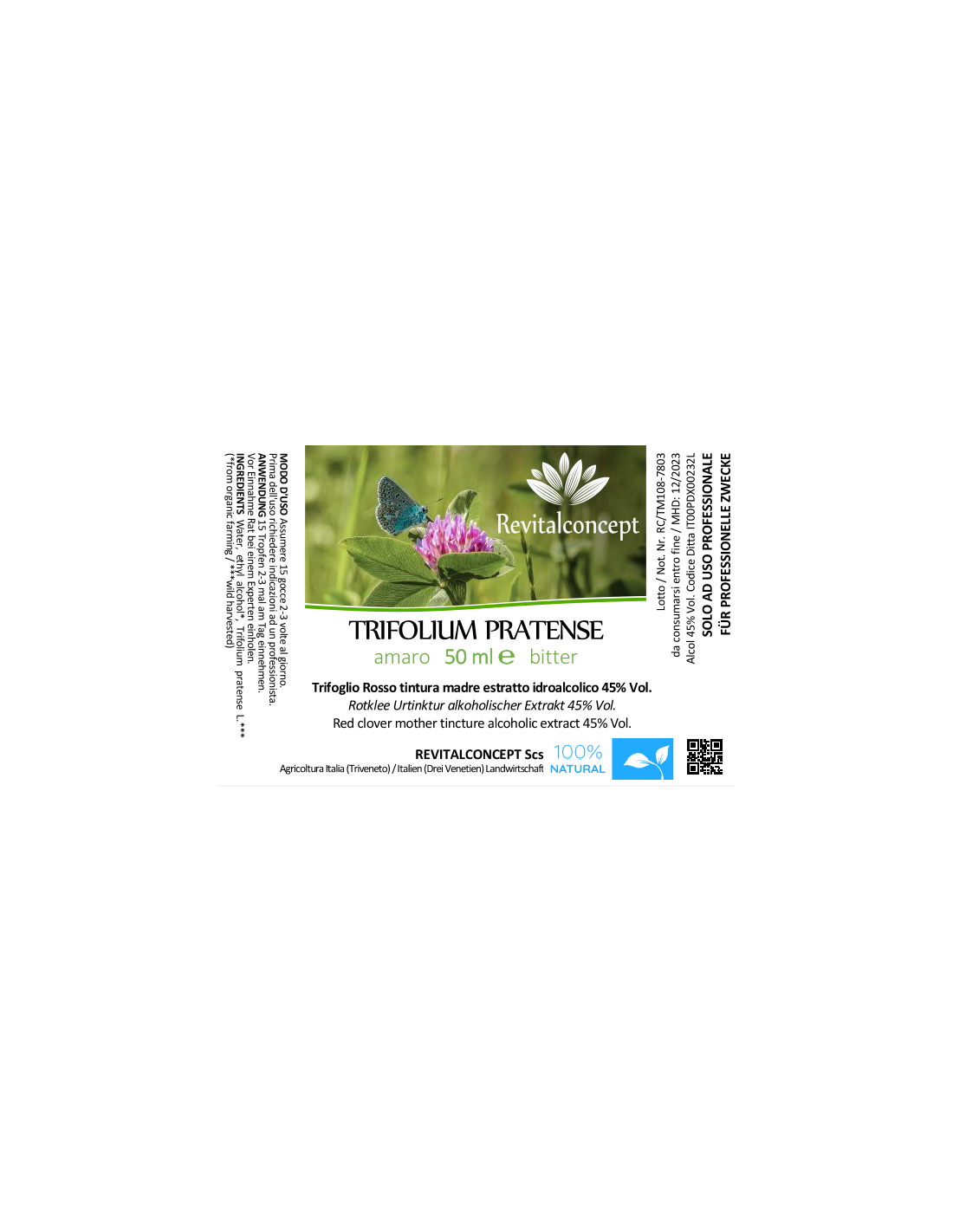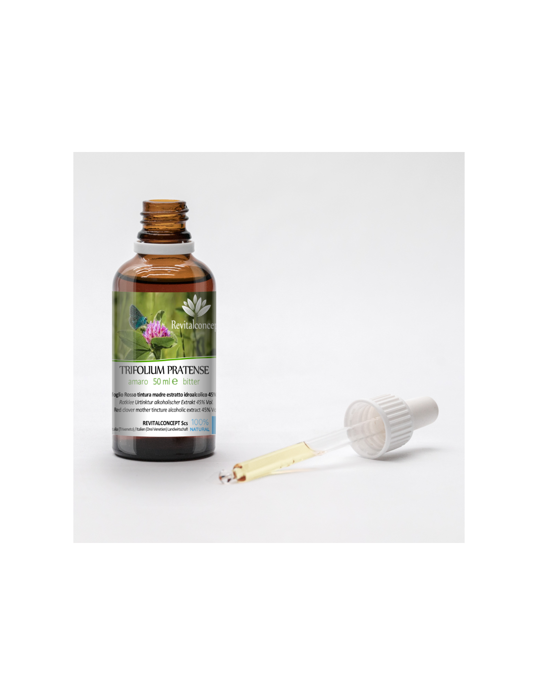 Ingredients: Water, ethyl alcohol*, Trifolium pratense L.*** (*from organic farming / ***wild harvested)